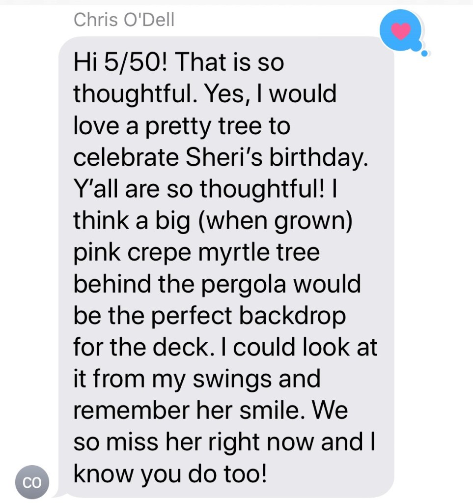 Shortly after Sheri died, Chris send us each a card filled with sweet words and a gift card to nudge us to put a girls trip together – knowing that it would please Sheri for us to have something fun to look forward to. Before #covid hit we put a date on the calendar and have been looking forward to a trip, in her honor, to Florida in September. It will certainly be strange to do a girls trip without her but I’m thankful for the timing (we all need a BREAK/time away). I know there will be moments of tears – missing our girl – but there will also be plenty of laughter and joy as we continue on…because that’s what she wanted for us.