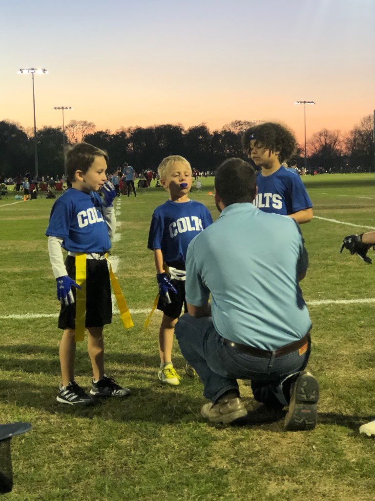 “Papa….I want to give you this…I know it’s not REALLY a “game ball” cause we didn’t use it in THE game but- I want you to have it to remember my first football game. So- you can just think of it as a “game ball”…if you want to.”
