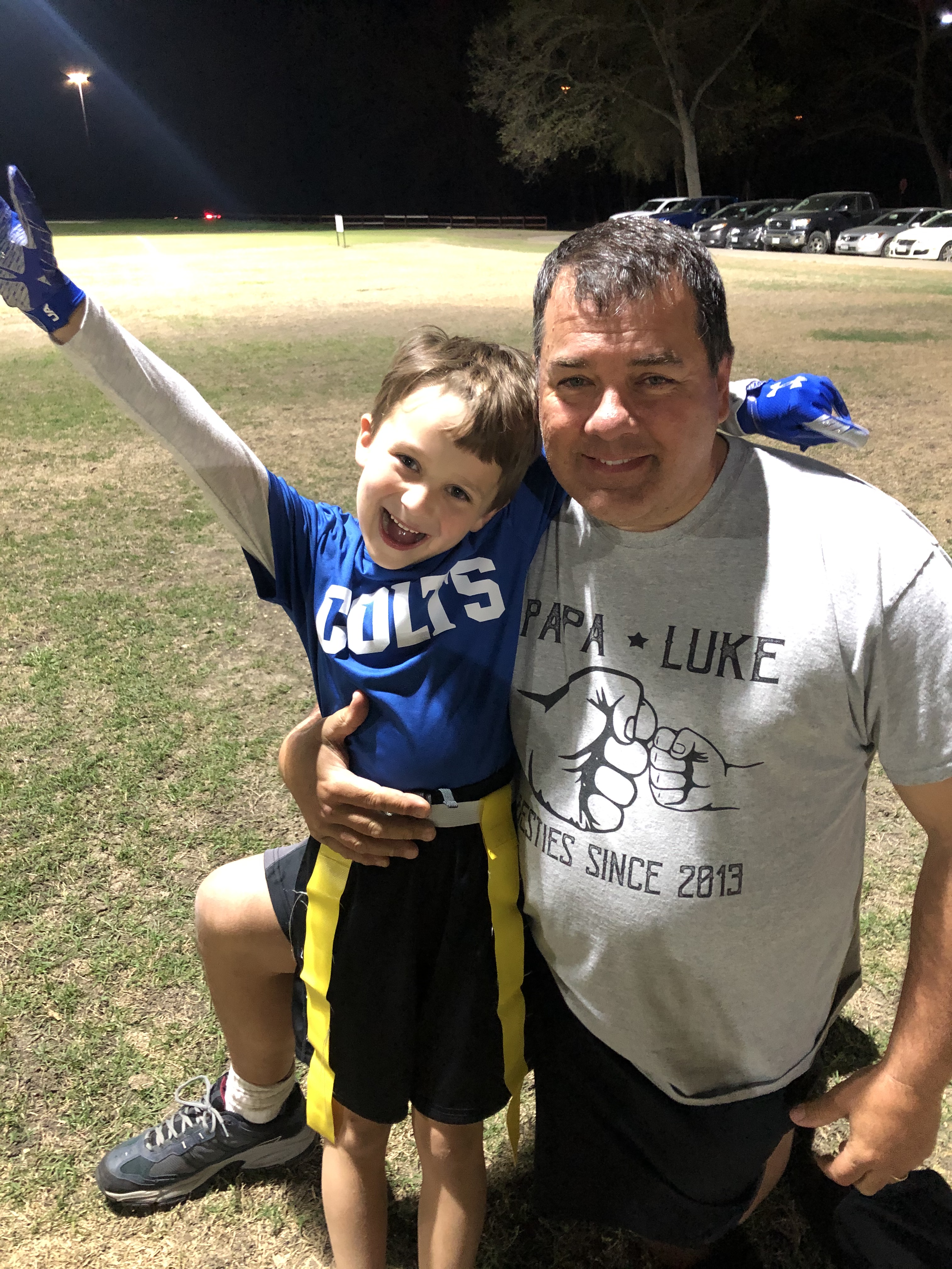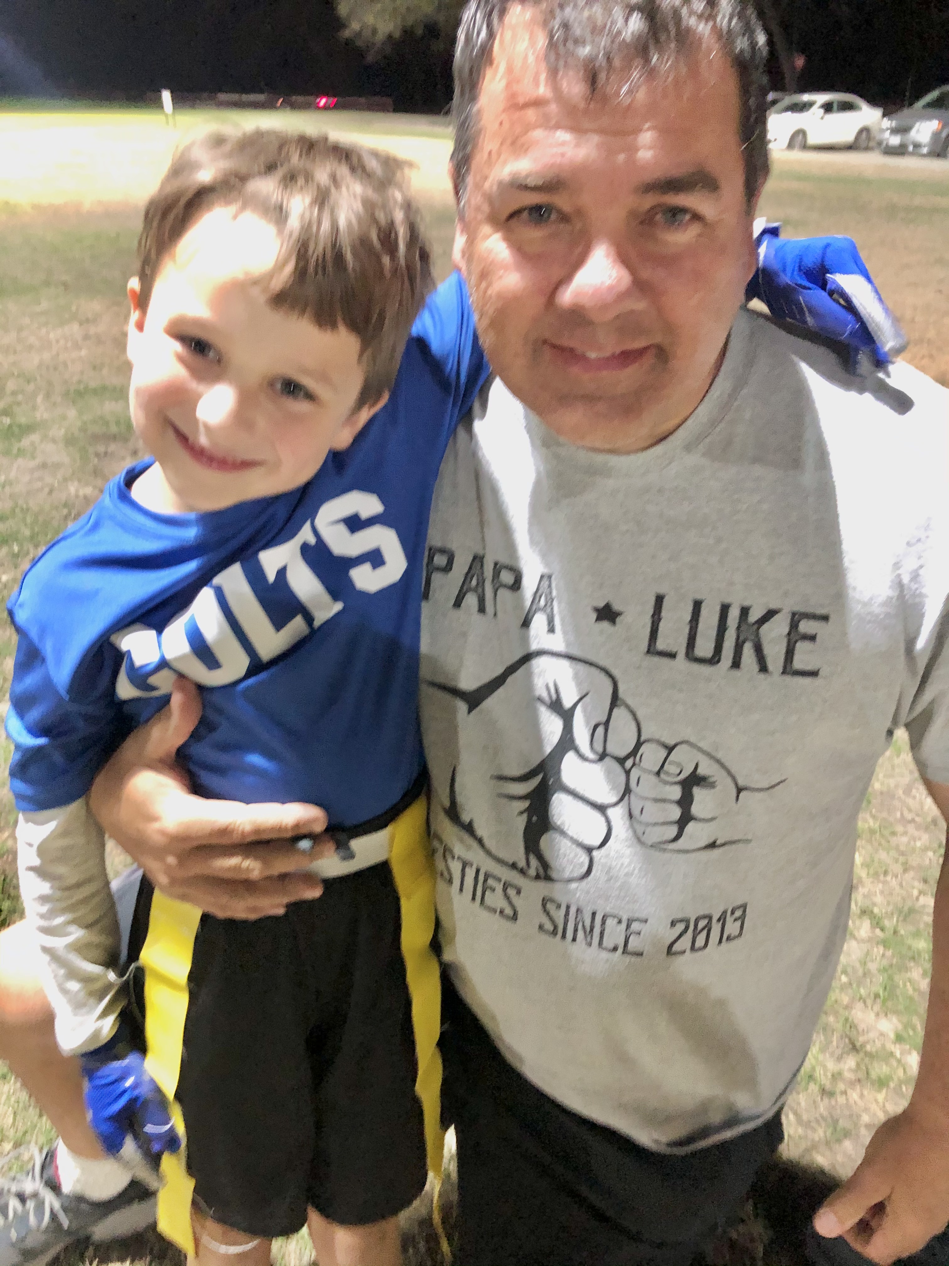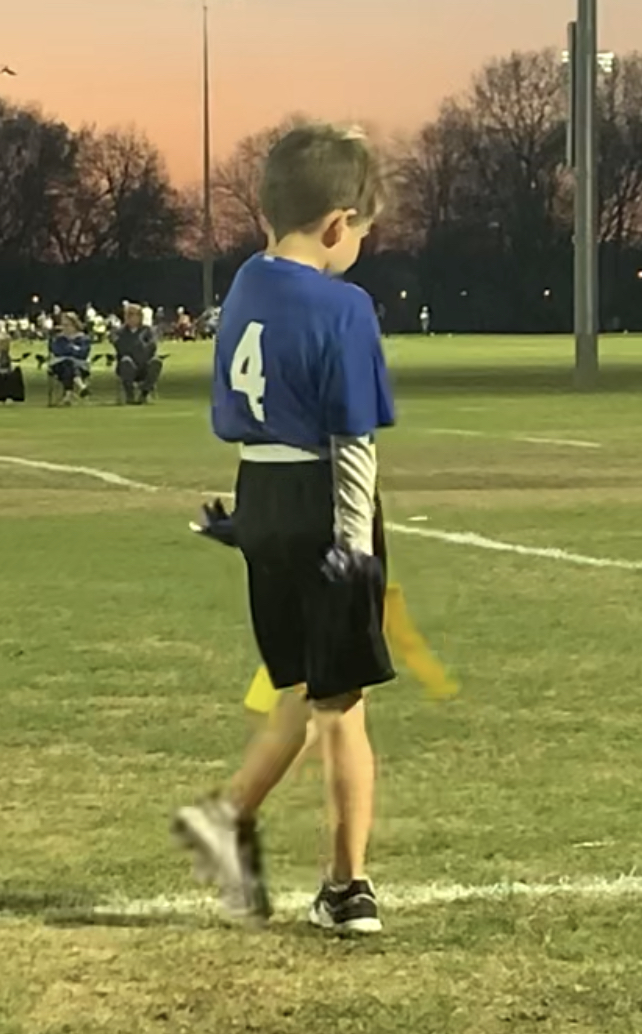 This time we were there to actually WATCH THE GAME because our grandson, #lukethomas, was starting his football career. While he did everything asked of him when it was his time to be ON the field, I think he’s favorite part of the game was doing sideline dances with his shadow! Earlier in the day his mom had taken him to get all the “accessories” (I’m a girl mom…is that the right word?), including a mouth-guard and a cool pair of gloves (just in case he ever touched the ball!). She made the mistake of mentioning how much the gloves looked like the ONE worn by Michael Jackson and so I’m thinking that inspired the dance moves throughout the game!