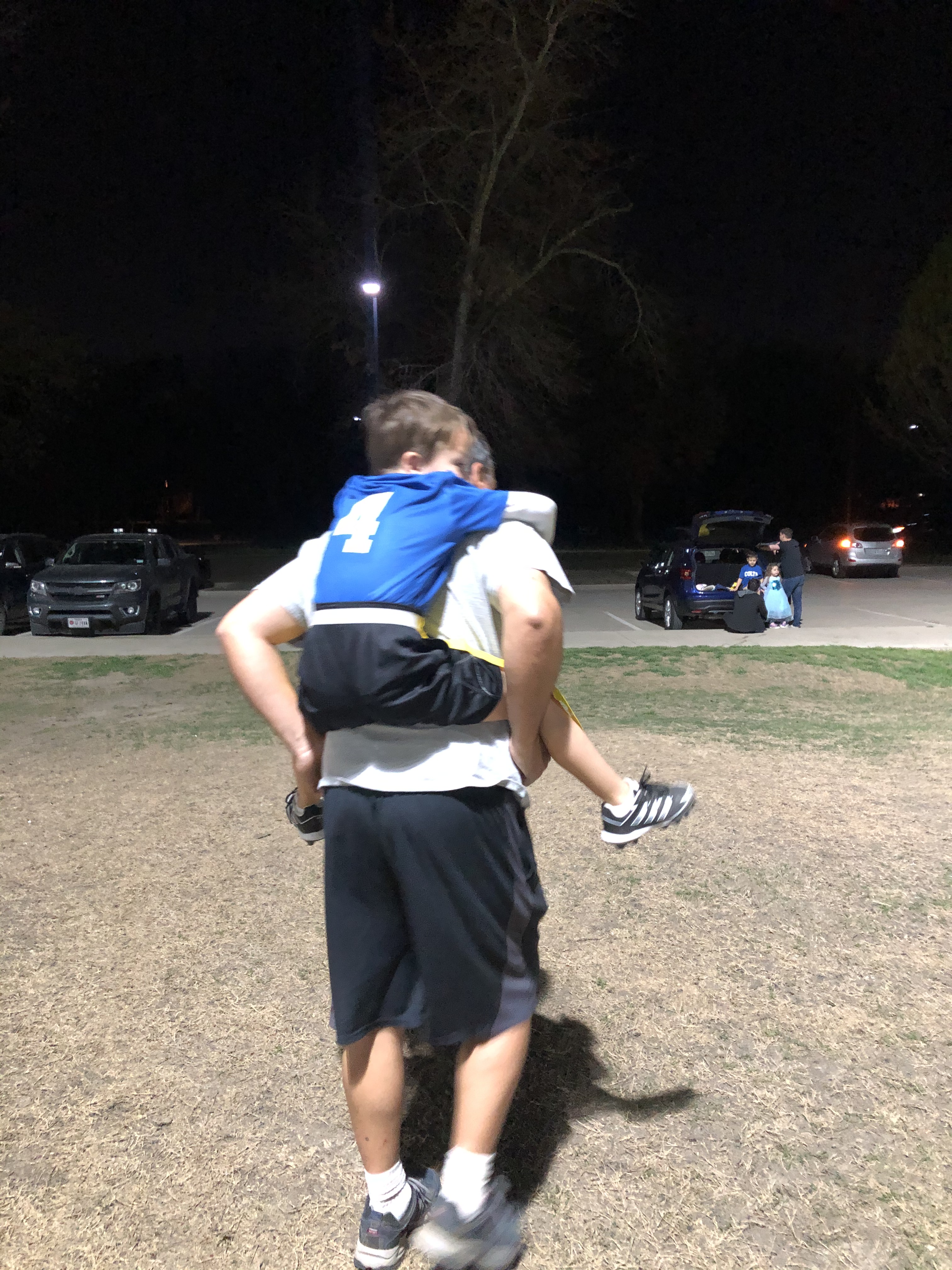 As we headed to the parking lot he casually mentioned, “Am I going home with anyone else besides mommy?”, which basically meant, “PAPA – can I go home with you?” Since it was a school night, the answer was “Sorry, Bud” but with the promise of a sleepover soon. We stopped to take a few pics and then he jumped on Tom’s back cause he was “sooooooo tired from all the running I did!” 😊